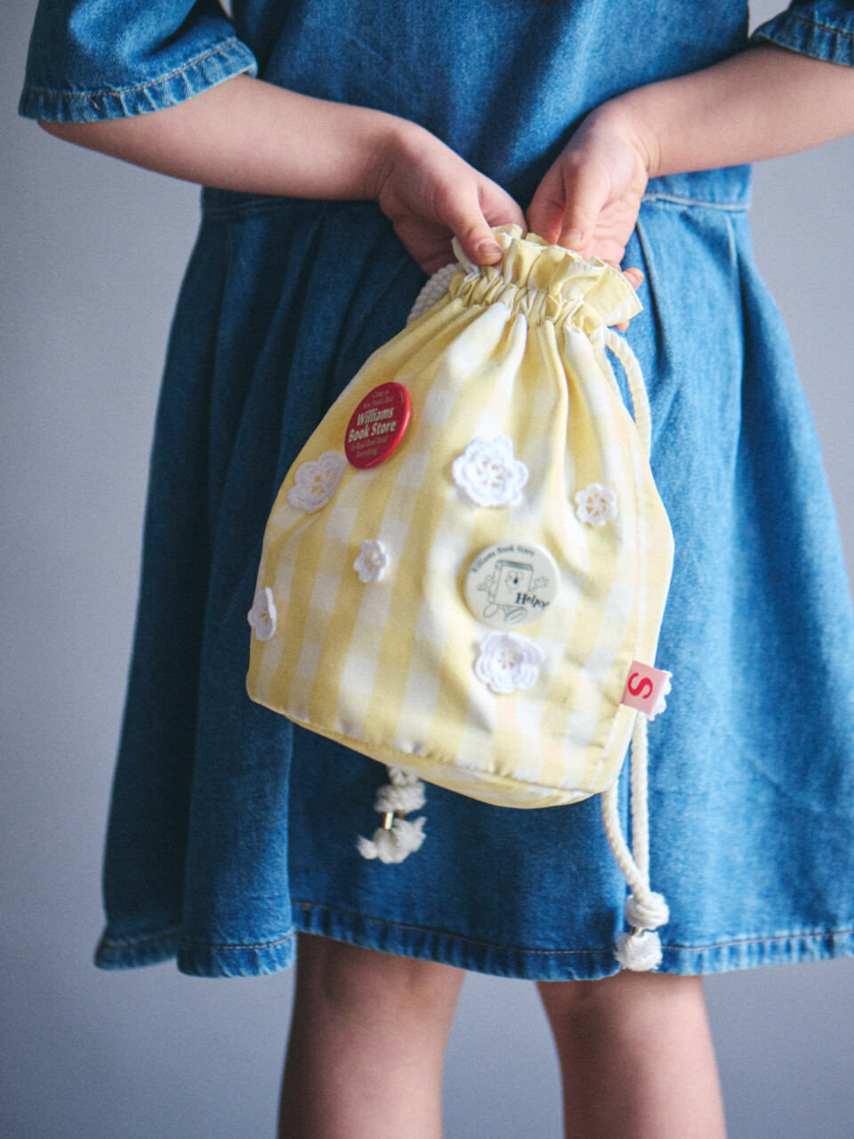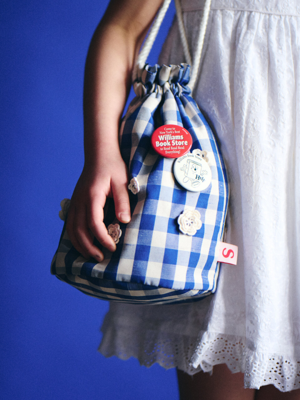愛光女子学園の在院生たちが制作したクロッシェレースの小花モチーフを12個〜14個散りばめた、春らしい鮮やかなギンガムチェックのポーチバッグ。表地には、ジャガードの産地・桐生で織られたShinzoneオリジナル生地を使用。 ハンドメイドの小花モチーフと、ブランドオリジナルの缶バッジを組み合わせた、特別仕様のデザインです。ひとつひとつ異なる表情を持つレースモチーフが、春の装いにさりげない温もりを添えます。 日常使いしやすいサイズ感で、コーディネートに軽やかな彩りをプラスしてくれるアイテムです。